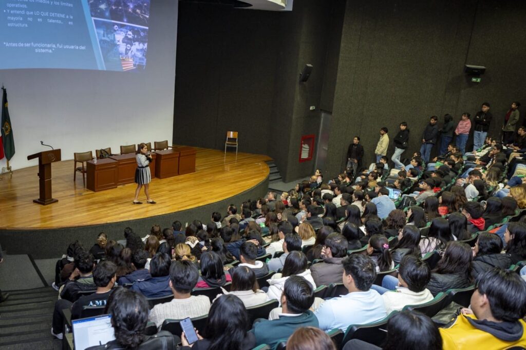 Durante su participación, la especialista destacó que la internacionalización es un elemento clave en la formación académica, ya que permite a las y los estudiantes ampliar sus oportunidades profesionales y competir en mercados globales. Enfatizó que el desarrollo de una marca personal o de productos competitivos requiere procesos estratégicos orientados a alcanzar estándares de excelencia.