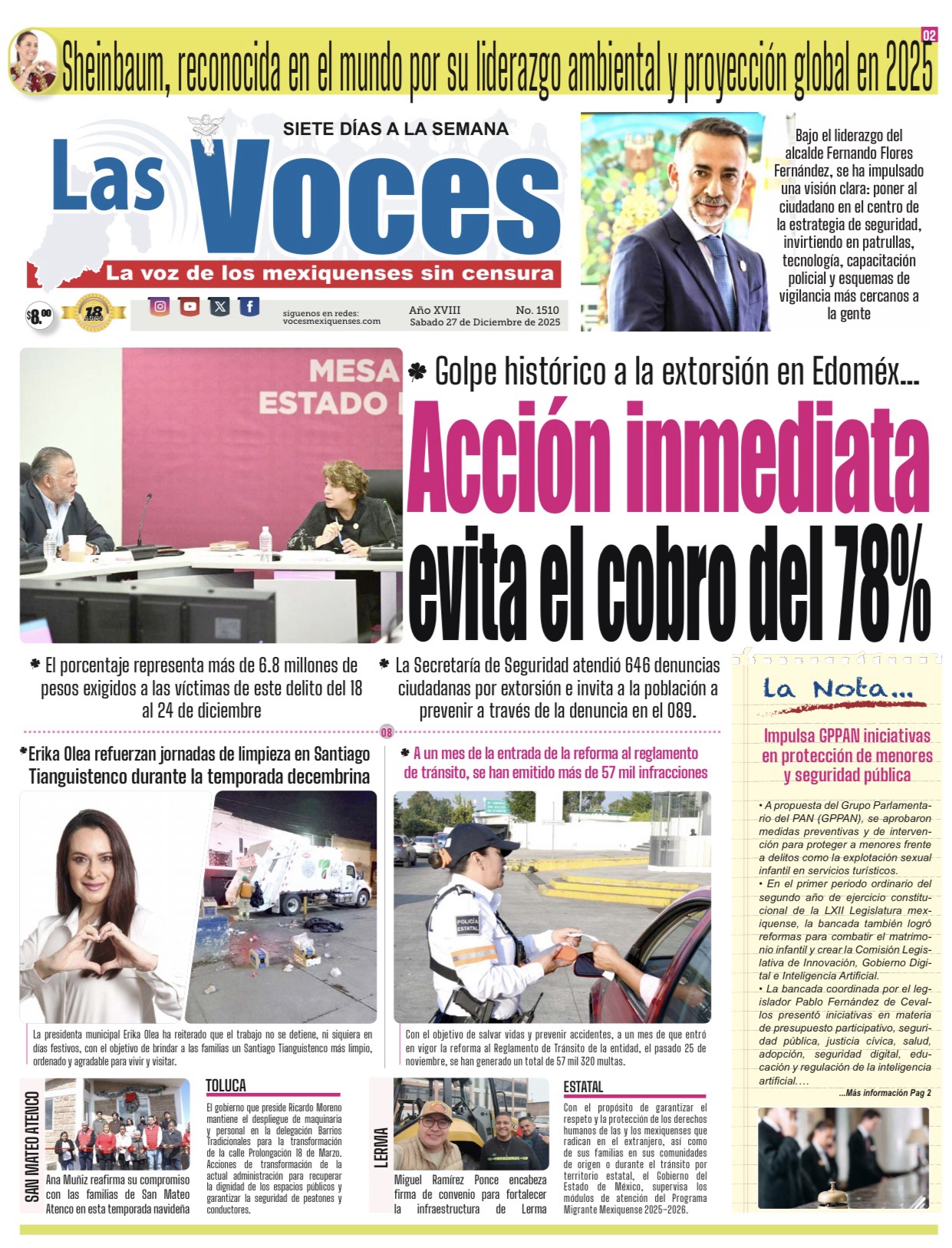El año 2025 marcó un momento histórico para México al convertirse en el primer año de gobierno de la Dra. Claudia Sheinbaum Pardo como la primera mujer Presidenta de la República, periodo en el que su liderazgo, visión y estilo fueron reconocidos por organismos y medios de comunicación de prestigio internacional.
