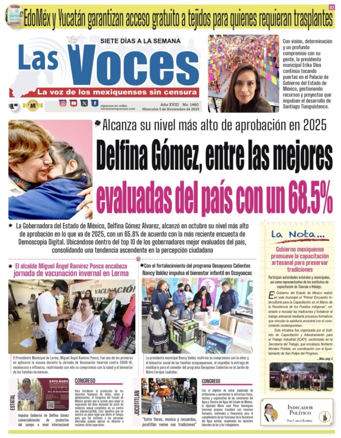 La Gobernadora del Estado de México, Delfina Gómez Álvarez, alcanzó en octubre su nivel más alto de aprobación en lo que va de 2025, con un 65.8% de acuerdo con la más reciente encuesta de Demoscopia Digital. Ubicándose dentro del top 10 de los gobernadores mejor evaluados del país, consolidando una tendencia ascendente en la percepción ciudadana.