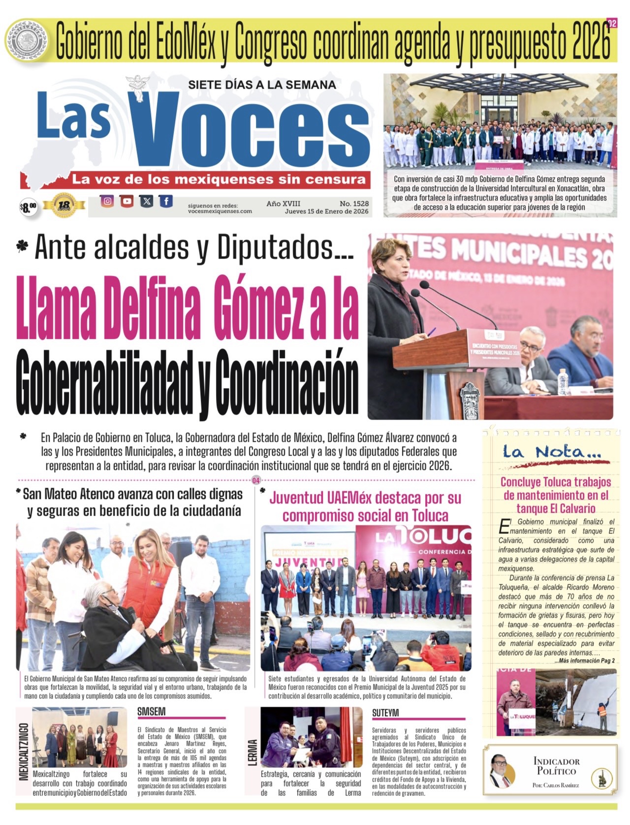En Palacio de Gobierno en Toluca, la Gobernadora del Estado de México, Delfina Gómez Álvarez convocó a las y los Presidentes Municipales, a integrantes del Congreso Local y a las y los diputados Federales que representan a la entidad, para revisar la coordinación institucional que se tendrá en el ejercicio 2026.