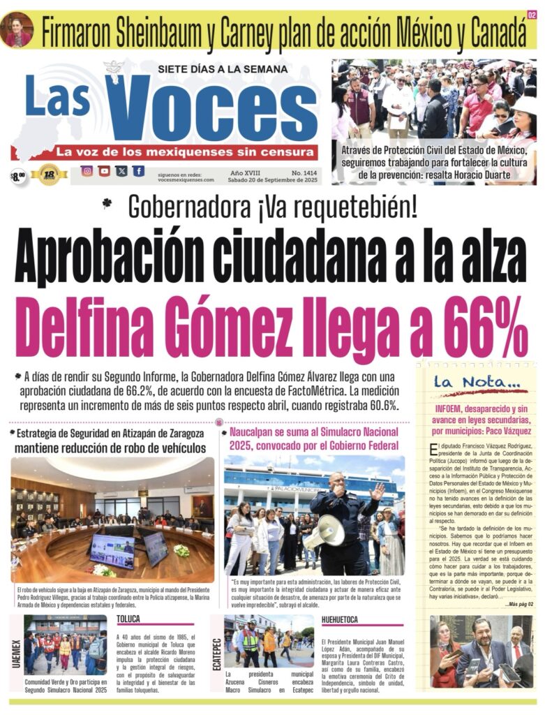 A días de rendir su Segundo Informe, la Gobernadora Delfina Gómez Álvarez llega con una aprobación ciudadana de 66.2%, de acuerdo con la encuesta de FactoMétrica. La medición representa un incremento de más de seis puntos respecto abril, cuando registraba 60.6%.