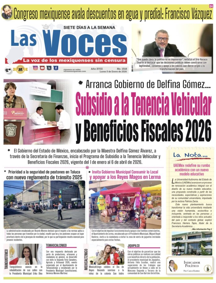 El Gobierno del Estado de México, encabezado por la Maestra Delfina Gómez Álvarez, a través de la Secretaría de Finanzas, inicia el Programa de Subsidio a la Tenencia Vehicular y Beneficios Fiscales 2026, vigente del 1 de enero al 6 de abril de 2026.