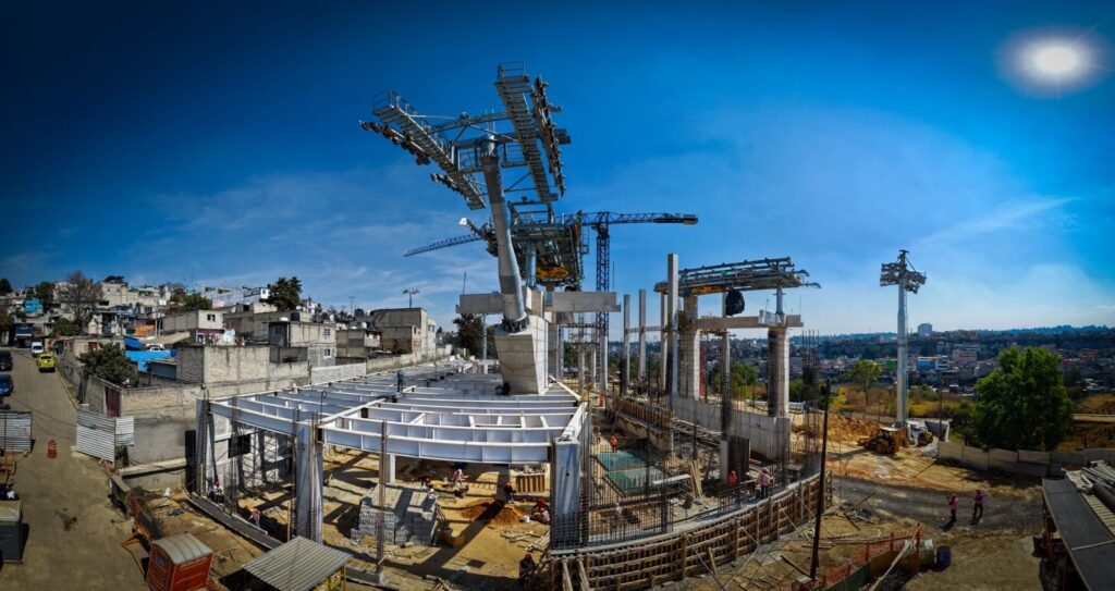 Durante un recorrido por las 10 estaciones originalmente proyectadas, se observaron avances visibles en la infraestructura que ya marca el trazo del recorrido del teleférico. Posteriormente, tras la supervisión en la estación San Antonio Zomeyucan, se informó que se han colocado más de la mitad de los 62 postes que conformarán los 9.5 kilómetros de longitud de este sistema de transporte.