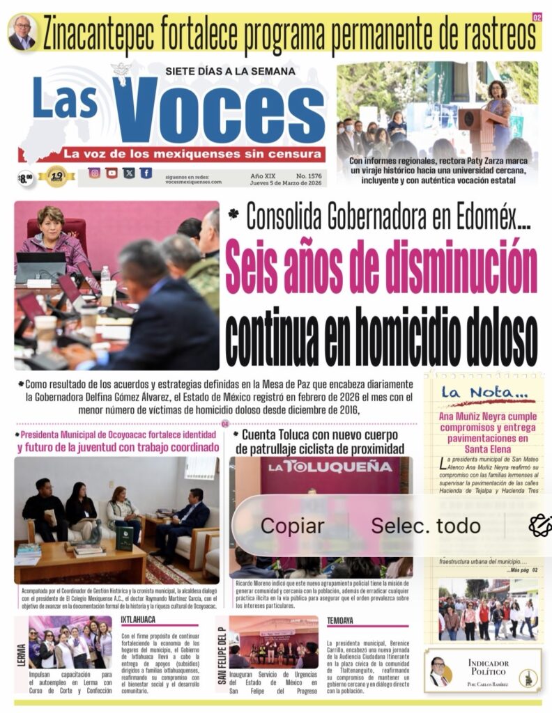 Como resultado de los acuerdos y estrategias definidas en la Mesa de Paz que encabeza diariamente la Gobernadora Delfina Gómez Álvarez, el Estado de México registró en febrero de 2026 el mes con el menor número de víctimas de homicidio doloso desde diciembre de 2016,