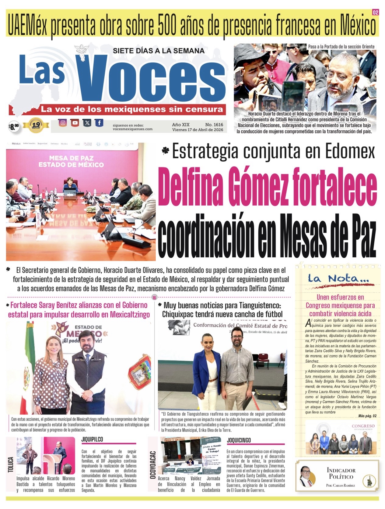 El Secretario general de Gobierno, Horacio Duarte Olivares, ha consolidado su papel como pieza clave en el fortalecimiento de la estrategia de seguridad en el Estado de México, al respaldar y dar seguimiento puntual a los acuerdos emanados de las Mesas de Paz, mecanismo encabezado por la gobernadora Delfina Gómez