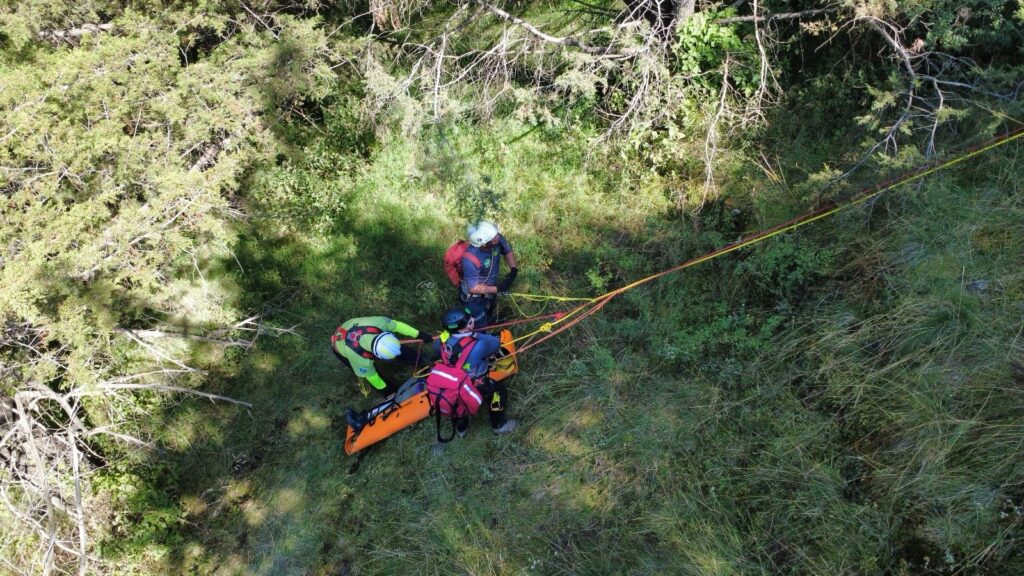 Durante la jornada de capacitación se recrearon dos escenarios distintos: un sendero accesible con una caída desde una pendiente pronunciada, donde fue necesario estabilizar y extraer a la víctima; y un desbarrancado con terreno inestable, en el que se emplearon drones para la evaluación del entorno y la seguridad de los rescatistas. Cada estación permitió poner a prueba protocolos, equipos y la capacidad de respuesta del personal ante condiciones adversas.