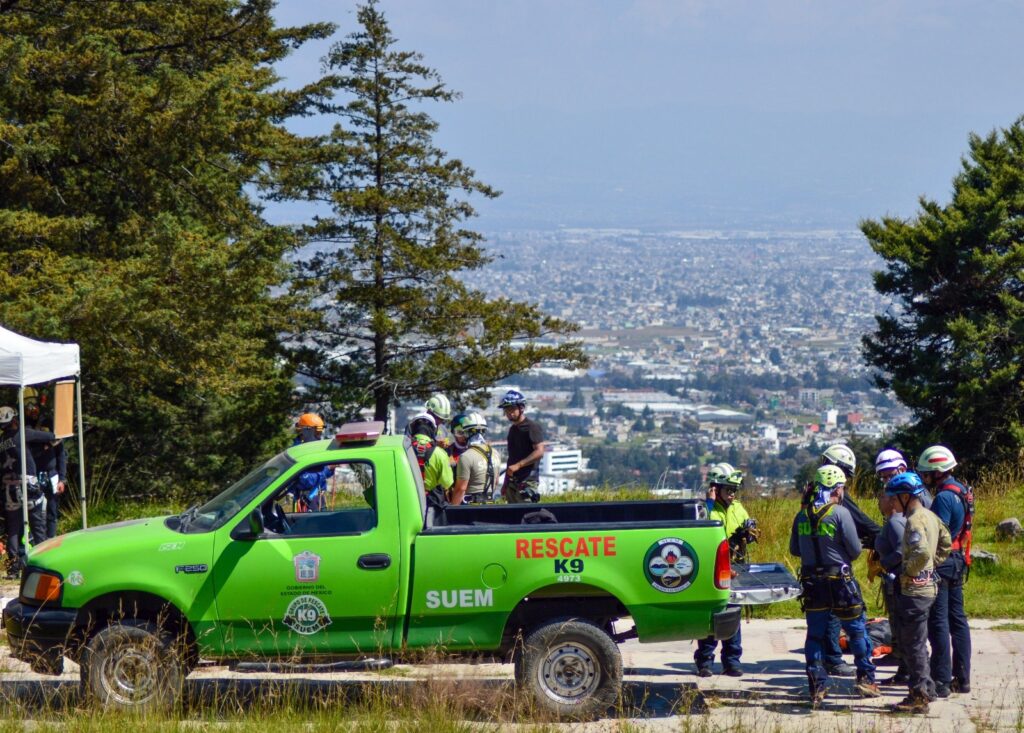 Toluca, Estado de México.– Con el propósito de reforzar la atención a emergencias en zonas de difícil acceso, el Gobierno del Estado de México, a través de la Secretaría de Salud, impulsa la profesionalización de los cuerpos de auxilio del Servicio de Urgencias del Estado de México (SUEM), mediante entrenamientos especializados en rescate agreste y operaciones con binomios caninos K9.