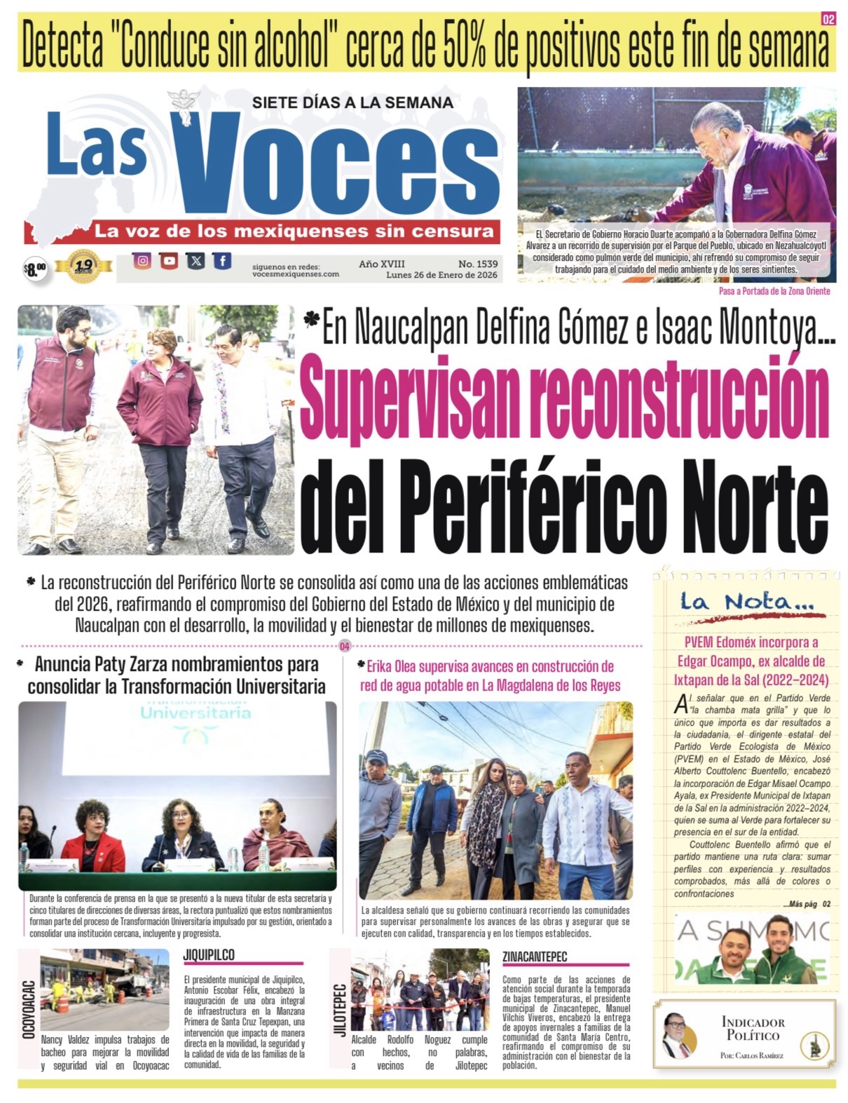 La reconstrucción del Periférico Norte se consolida así como una de las acciones emblemáticas del 2026, reafirmando el compromiso del Gobierno del Estado de México y del municipio de Naucalpan con el desarrollo, la movilidad y el bienestar de millones de mexiquenses.