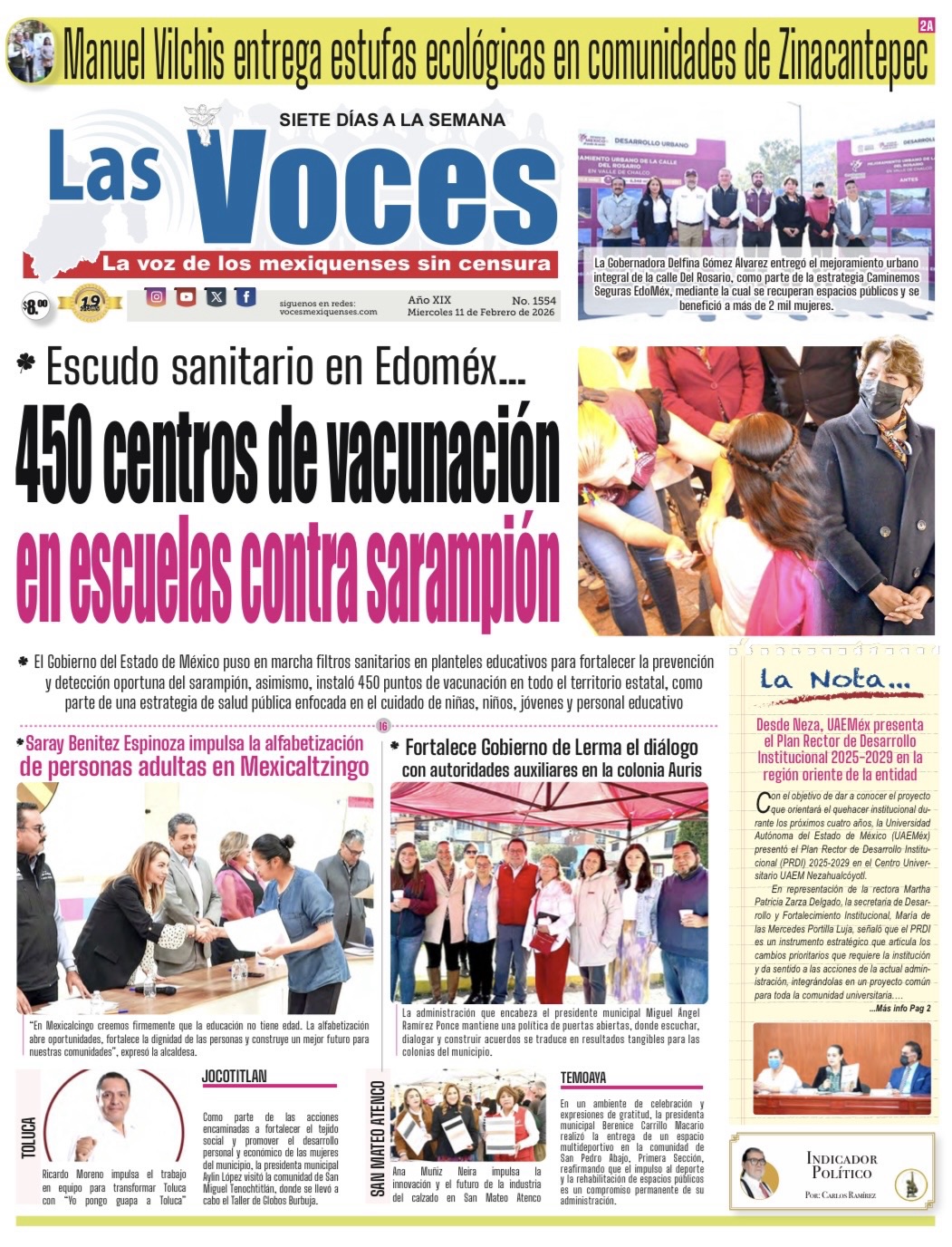 El Gobierno del Estado de México puso en marcha filtros sanitarios en planteles educativos para fortalecer la prevención y detección oportuna del sarampión, asimismo, instaló 450 puntos de vacunación en todo el territorio estatal, como parte de una estrategia de salud pública enfocada en el cuidado de niñas, niños, jóvenes y personal educativo