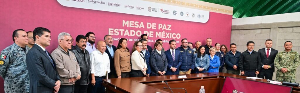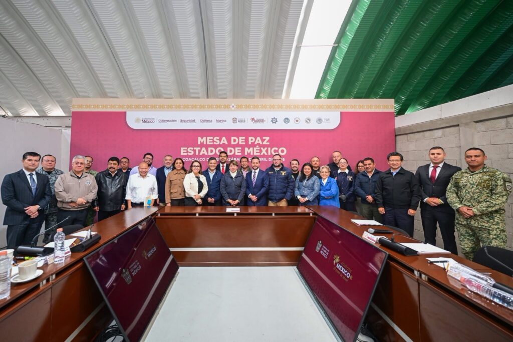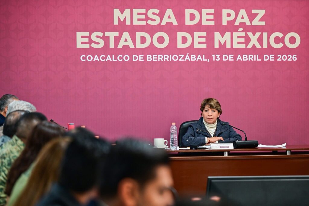 Coacalco, Estado de México.– Con el objetivo de reforzar la estrategia de seguridad en la región oriente de la entidad, la gobernadora del Estado de México, Delfina Gómez, encabezó una reunión de la Mesa de Paz en el municipio de Coacalco.