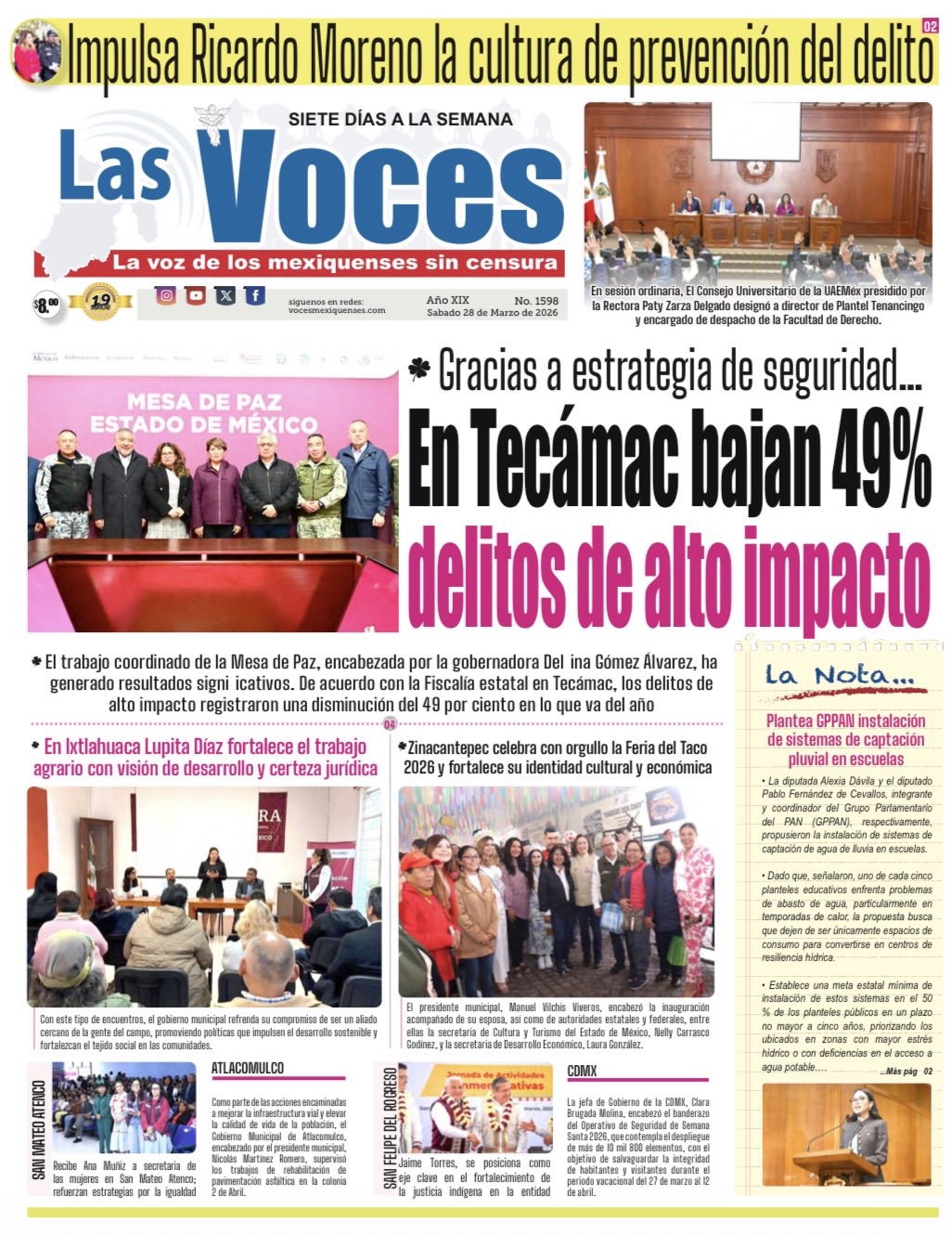 El trabajo coordinado de la Mesa de Paz, encabezada por la gobernadora Del ina Gómez Álvarez, ha generado resultados signi icativos. De acuerdo con la Fiscalía estatal en Tecámac, los delitos de alto impacto registraron una disminución del 49 por ciento en lo que va del año