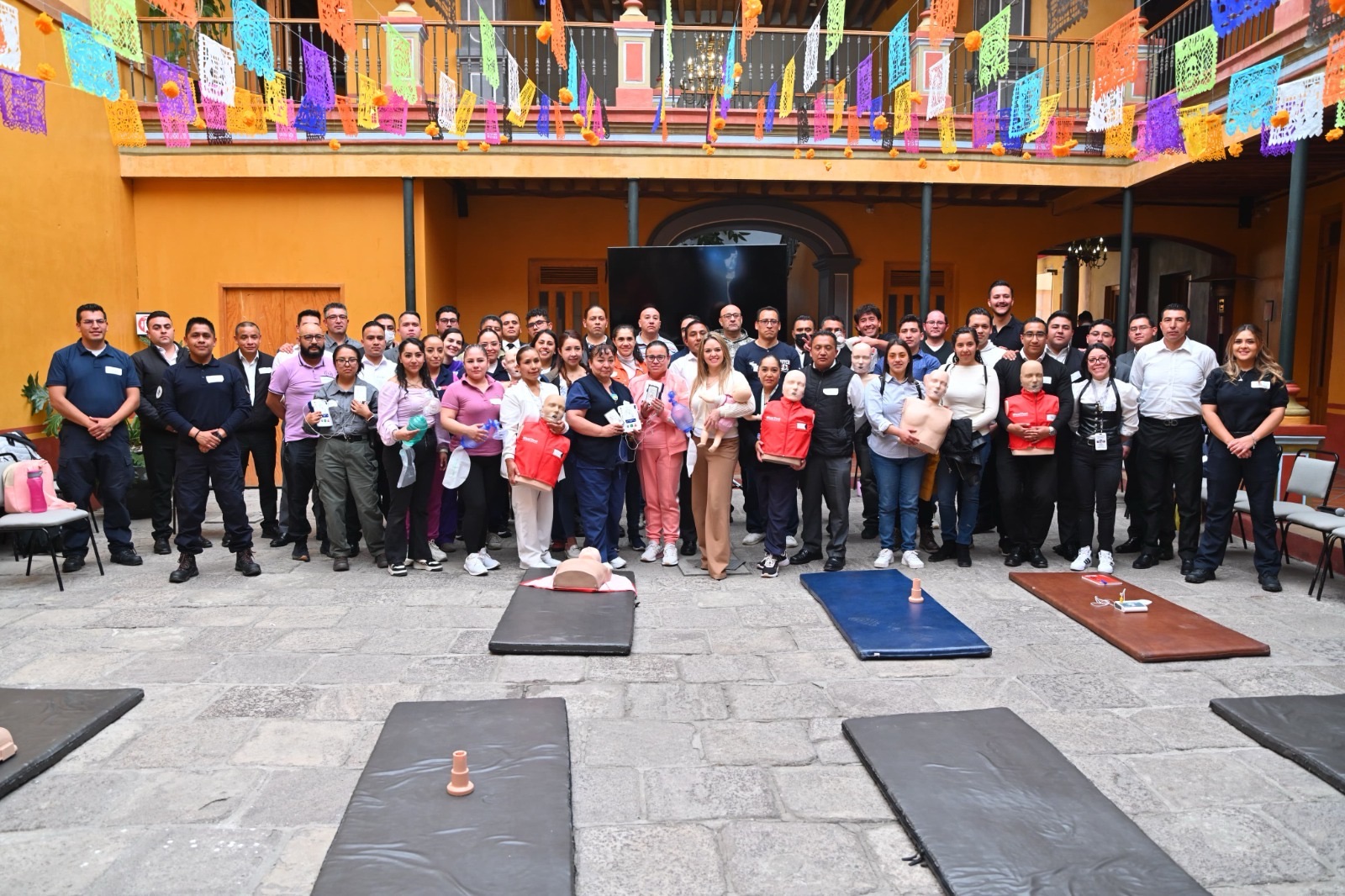 Durante la capacitación, el paramédico Matías Manuel Galve Saldaña, de Maga Consultores, explicó técnicas para actuar ante urgencias cardiovasculares, el uso correcto de desfibriladores y coordinó prácticas que permitirán a las y los participantes responder de manera oportuna en casos de contingencia.
