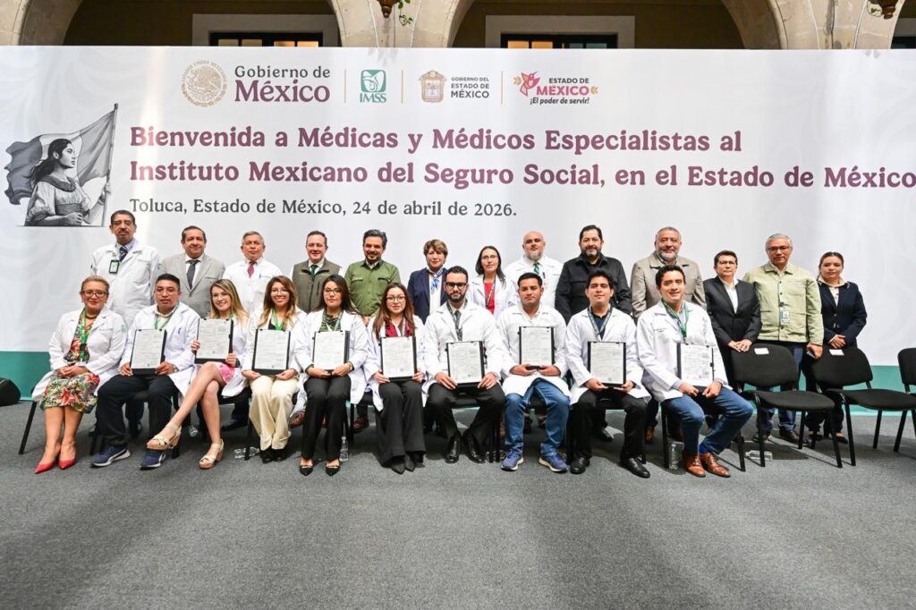 Toluca, Estado de México, 24 de abril de 2026. — El sistema de salud en la entidad mexiquense dio un paso significativo con la incorporación de mil 123 médicas y médicos especialistas al Instituto Mexicano del Seguro Social (IMSS), informó su director general, Zoé Robledo, durante un evento encabezado junto a la gobernadora Delfina Gómez Álvarez.