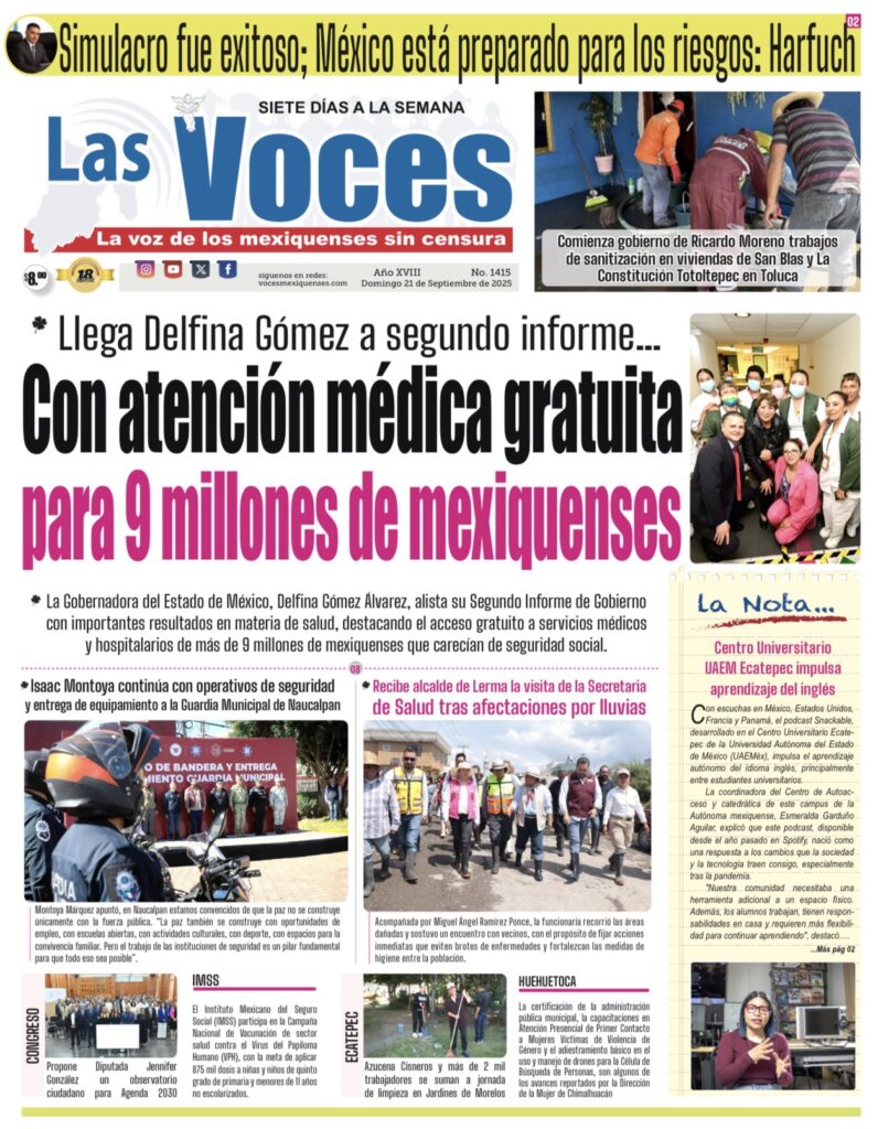 La Gobernadora del Estado de México, Delfina Gómez Álvarez, alista su Segundo Informe de Gobierno con importantes resultados en materia de salud, destacando el acceso gratuito a servicios médicos y hospitalarios de más de 9 millones de mexiquenses que carecían de seguridad social