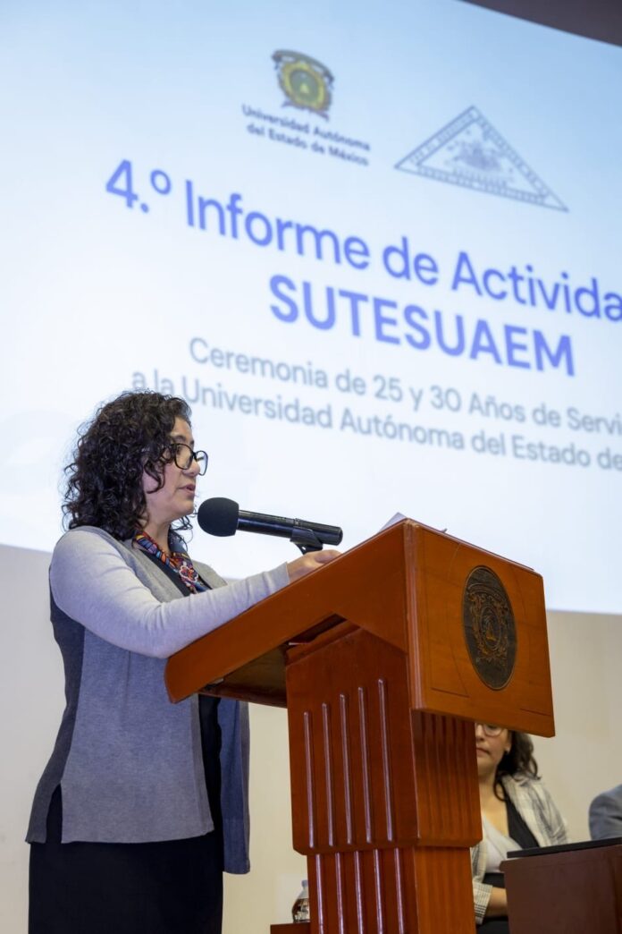 En este marco, la rectora felicitó a la nueva secretaria general del SUTESUAEM, Luz María García Molina, elegida en un proceso democrático en el que participaron mil 927 integrantes del sindicato, lo que representó más del 80% de su padrón.