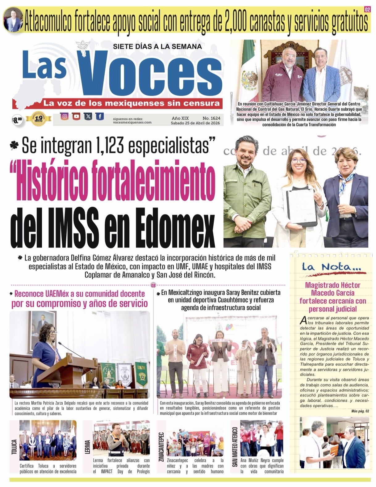 La gobernadora Delfina Gómez Álvarez destacó la incorporación histórica de más de mil especialistas al Estado de México, con impacto en UMF, UMAE y hospitales del IMSS Coplamar de Amanalco y San José del Rincón