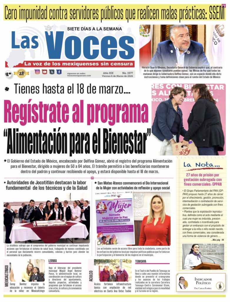 El Gobierno del Estado de México, encabezado por Delfina Gómez, abrió el registro del programa Alimentación para el Bienestar, dirigido a mujeres de 50 a 64 años. El trámite permitirá a las beneficiarias mantenerse dentro del padrón y continuar recibiendo el apoyo, y estará disponible hasta el 18 de marzo.