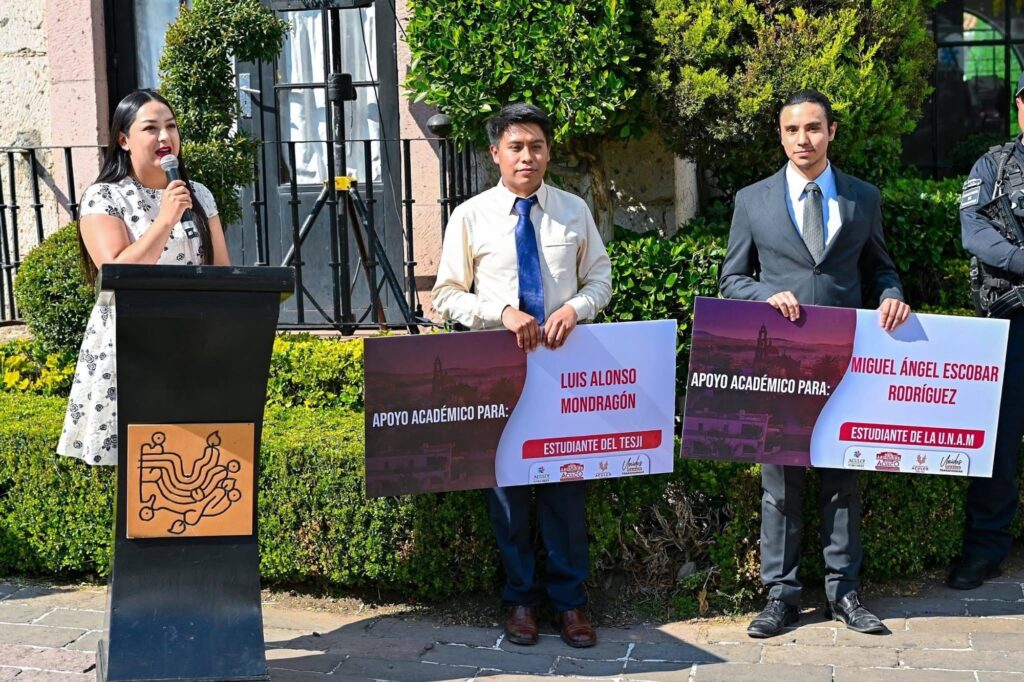 Aculco, Estado de México.– El Ayuntamiento de Aculco, encabezado por la presidenta municipal Valeria Cruz Olvera, reafirmó su compromiso con la educación y el impulso a la juventud al entregar apoyos a dos jóvenes aculquenses que han destacado por su dedicación, esfuerzo y alto desempeño académico.