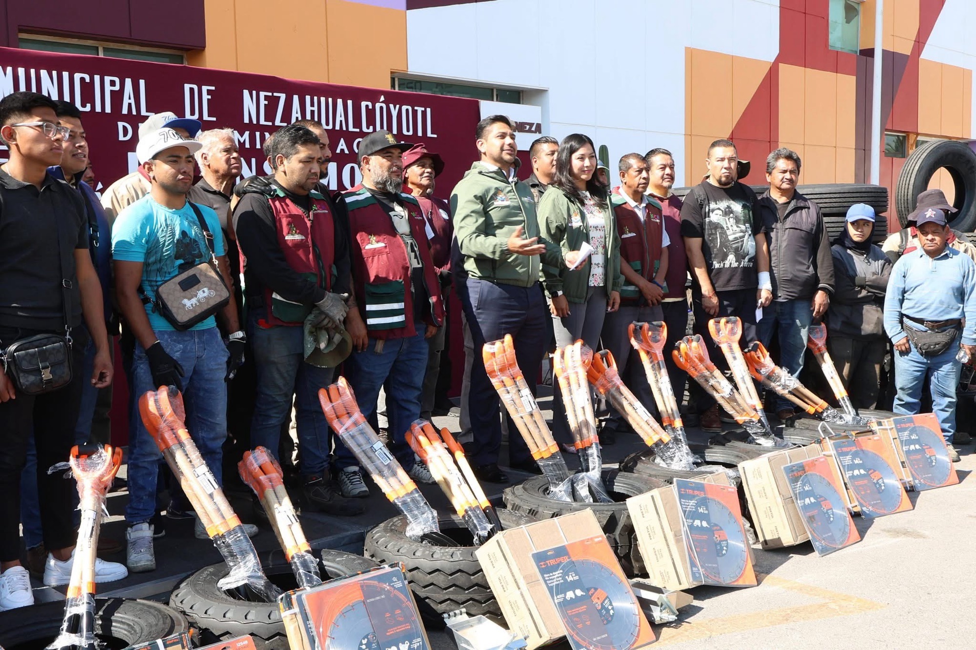 Nezahualcóyotl, Estado de México.– Con el objetivo de mejorar la atención ciudadana y las condiciones laborales del personal municipal, el presidente municipal Adolfo Cerqueda encabezó la entrega de herramientas y equipo a las áreas operativas del Ayuntamiento.