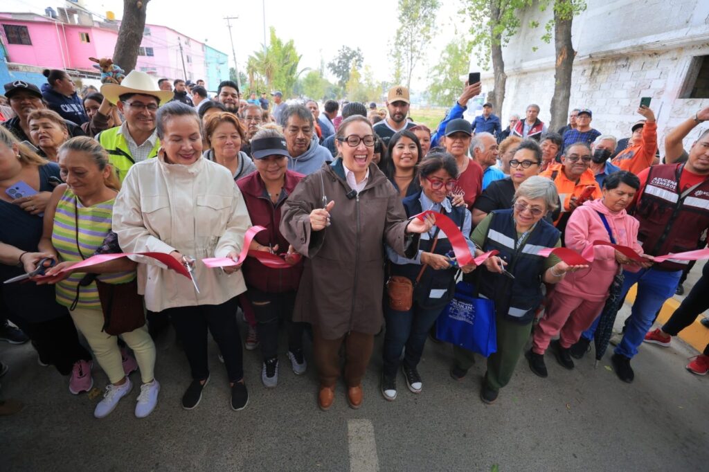 La alcaldesa Azucena Cisneros Coss encabezó la entrega de esta vialidad de 600 metros lineales, considerada una de las principales de la zona por su conexión con escuelas, espacios recreativos, una lechería y comunidades aledañas.