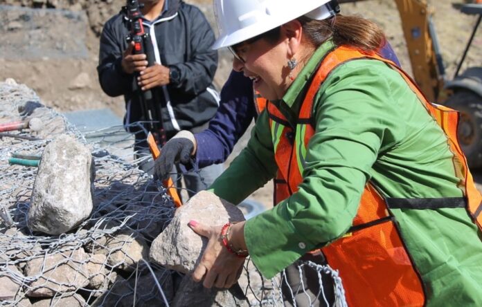 Como símbolo del trabajo conjunto con la comunidad, la edil colocó una piedra en la estructura en construcción y destacó la participación ciudadana en estas tareas preventivas.