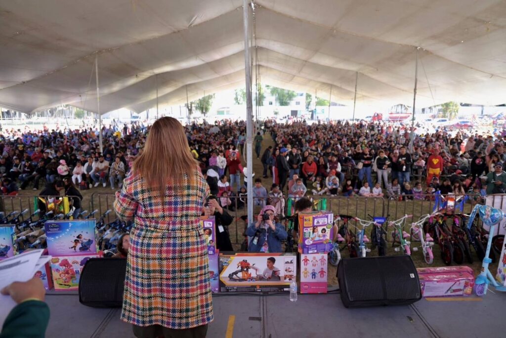 Cuautitlán, Estado de México.— Con el propósito de preservar la ilusión y brindar momentos de felicidad a las familias del municipio, el Gobierno Municipal de Cuautitlán, encabezado por la presidenta municipal Juana Carrillo Luna, llevó a cabo un magno Festival de Día de Reyes en el Estadio Los Pinos, donde cientos de niñas y niños disfrutaron de una jornada llena de diversión y sorpresas.