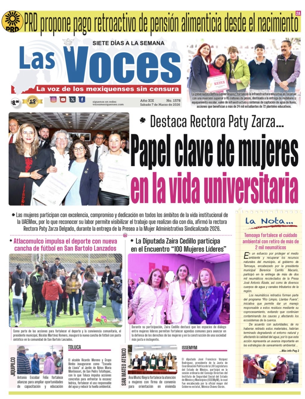 En un esfuerzo por proteger el medio ambiente y recuperar los recursos naturales del municipio, el gobierno de Temoaya, encabezado por la presidenta municipal Berenice Carrillo Macario, participó en la entrega de más de dos mil neumáticos recolectados de la Presa José Antonio Álzate, así como de diversos cuerpos de agua y canales tributarios de la región