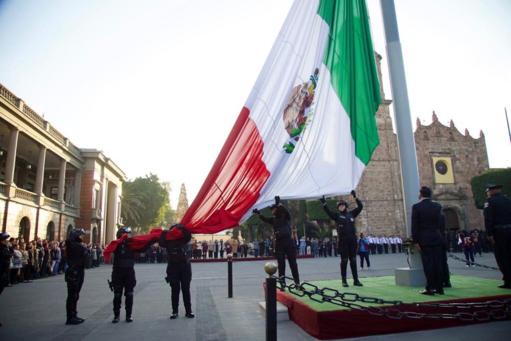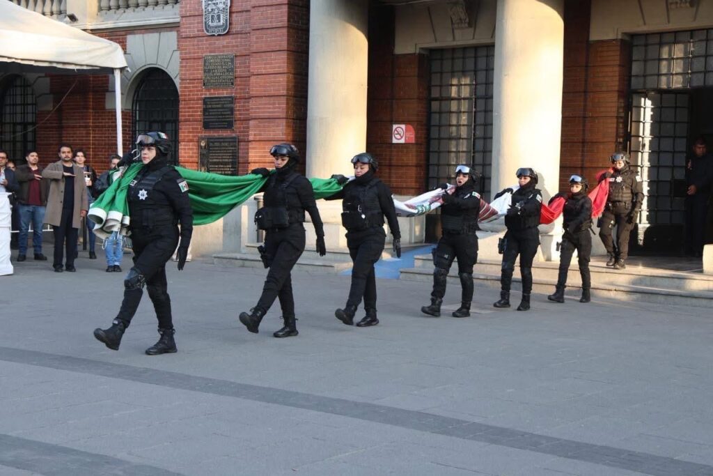 Al compás de la Banda de Guerra, el lábaro patrio fue izado para ondear en lo alto de la Plaza Cívica, recordando a las y los asistentes la importancia de honrar y respetar a la Bandera Nacional como símbolo de unidad e identidad del país. Elementos de la Comisaría General de Proximidad y Seguridad Ciudadana realizaron el despliegue y la custodia de la enseña nacional, mientras se ejecutaban los toques reglamentarios.
