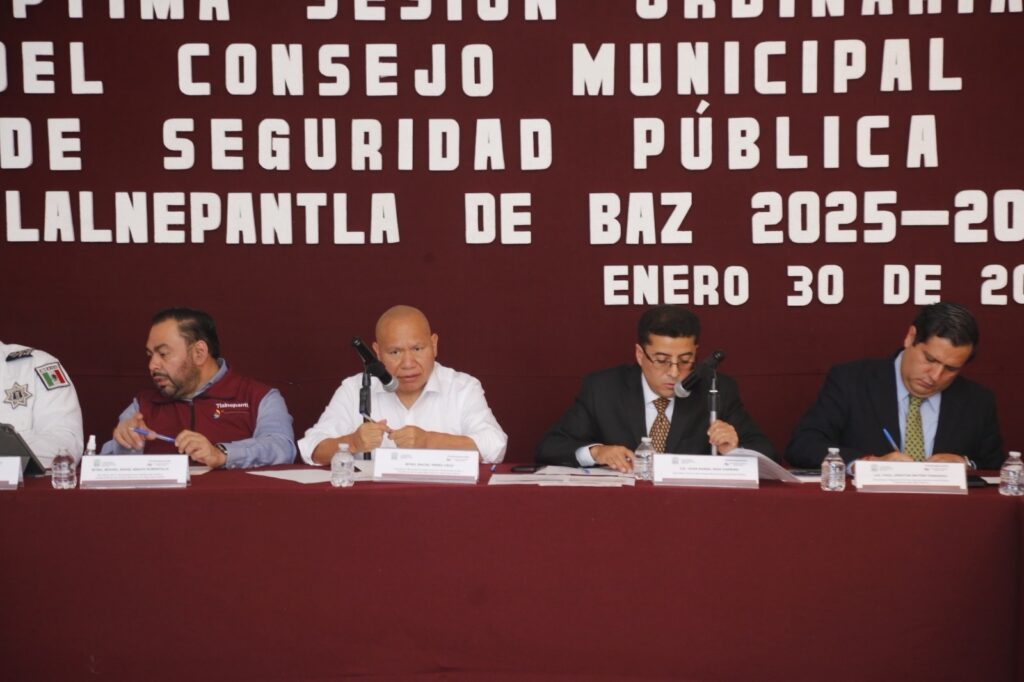 Con el objetivo de fortalecer la seguridad ciudadana y reforzar la coordinación interinstitucional, el Presidente Municipal de Tlalnepantla, Raciel Pérez Cruz, encabezó la Séptima Sesión Ordinaria del Consejo Municipal de Seguridad Pública.