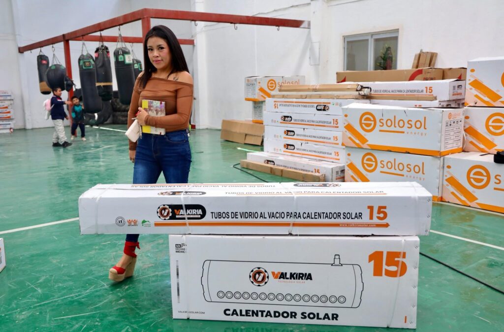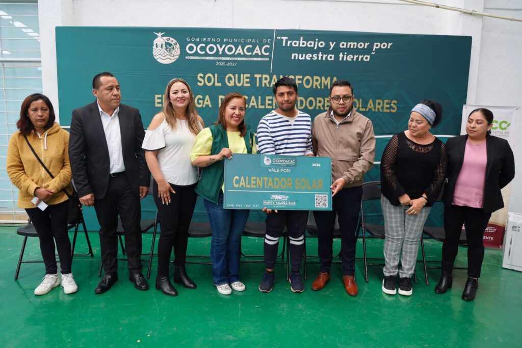 Ocoyoacac, Estado de México.– Como parte de las acciones para fortalecer el bienestar social y el cuidado del medio ambiente, la presidenta municipal de Nancy Valdez encabezó la entrega de 50 calentadores solares en beneficio de familias del municipio.
