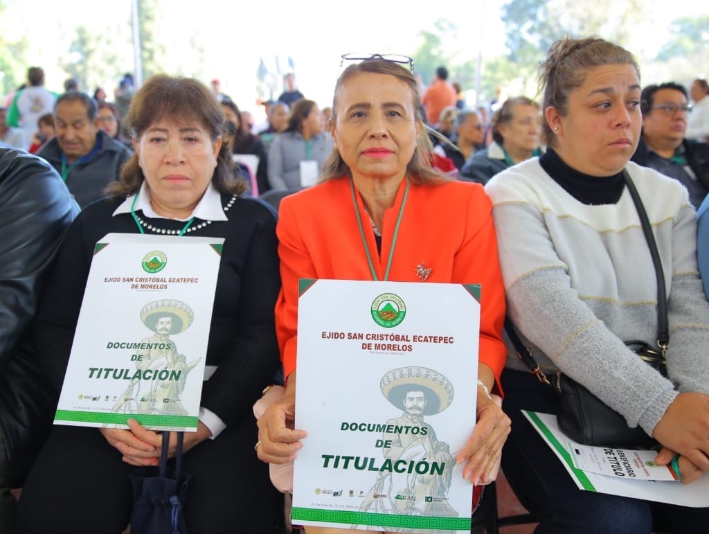 La entrega estuvo encabezada por la presidenta municipal Azucena Cisneros Coss, quien destacó que este logro es fruto del trabajo coordinado entre los vecinos, el gobierno municipal, estatal, federal y el Registro Agrario Nacional (RAN).