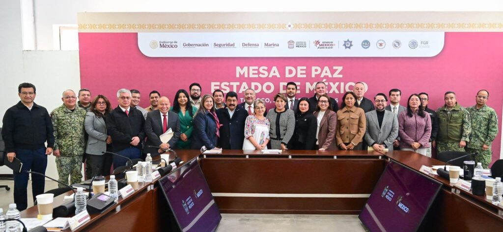 La gobernadora Delfina Gómez Álvarez encabezó la Mesa de Paz en Texcoco, acompañada por los presidentes municipales de la Zona Oriente: Azucena Cisneros (Ecatepec), Raciel Pérez (Chicoloapan), Isaac Montoya (Naucalpan), Daniel Serrano (Teotihuacán) y Nazario Gutiérrez (Texcoco), quienes se sumaron a los esfuerzos de coordinación entre los tres niveles de gobierno.