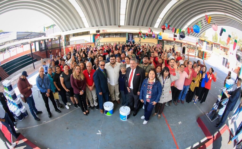 El programa, impulsado por la Dirección de Bienestar e Inclusión Social, entregó en noviembre 190 botes de pintura de 19 litros para mejorar aulas y bardas perimetrales en 55 escuelas; además, 30 planteles con problemas de humedad recibieron 140 latas de impermeabilizante, con lo cual se fortaleció el entorno físico y el ambiente de estudio.