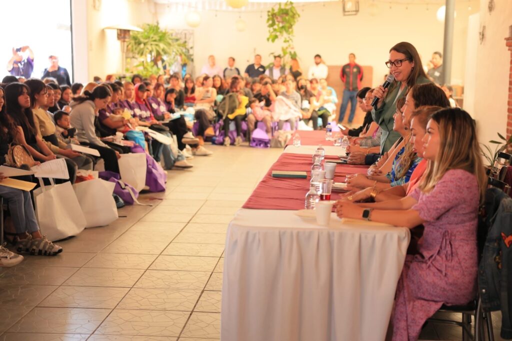 Durante el encuentro, cerca de 300 jóvenes madres participaron en actividades orientadas a fortalecer su desarrollo personal y económico. El programa municipal beneficia actualmente a mil mujeres con un apoyo económico de dos mil pesos mensuales, además de ofrecer acompañamiento educativo, talleres para el empleo, orientación psicoemocional y actividades de activación física.
