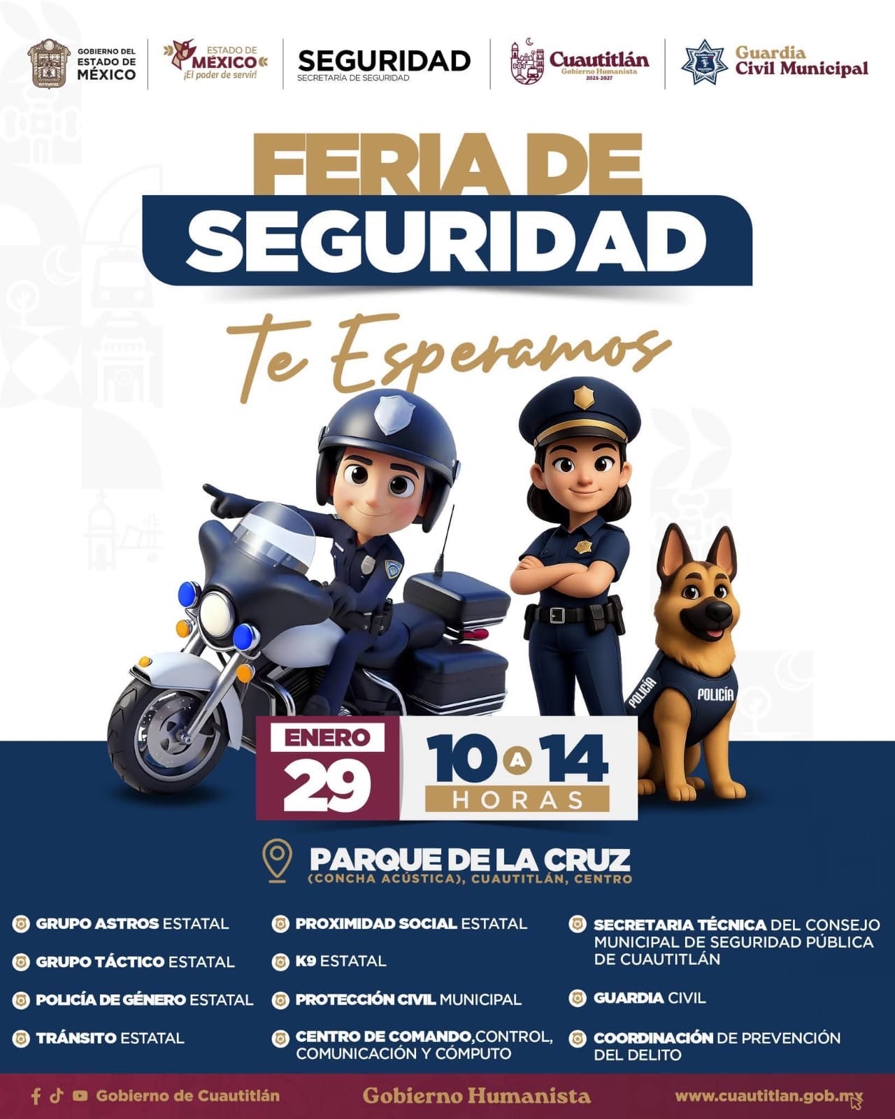 El evento es resultado de la coordinación entre el Gobierno del Estado de México, la Secretaría de Seguridad estatal, el Gobierno Municipal de Cuautitlán y la Guardia Civil Municipal, como parte de una estrategia integral orientada a generar entornos seguros y fortalecer la participación social en la prevención del delito.