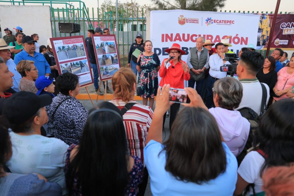 Ecatepec, Estado de México, 20 de febrero de 2026. La presidenta municipal de Ecatepec, Azucena Cisneros Coss, inauguró la repavimentación de la avenida Tecnológico y su continuación Maravillas, una vialidad de 2.5 kilómetros lineales que conecta las avenidas Central y R1 y que beneficiará a más de 57 mil habitantes de diversas comunidades del municipio.