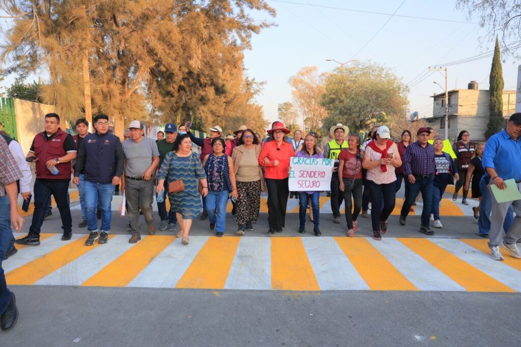 Acompañada por vecinos, la edil realizó el corte de listón y recorrió la vialidad, la cual ahora cuenta con iluminación y señalización, además de un mural en el asfalto con la leyenda “Ecatepec Amor y Paz”.