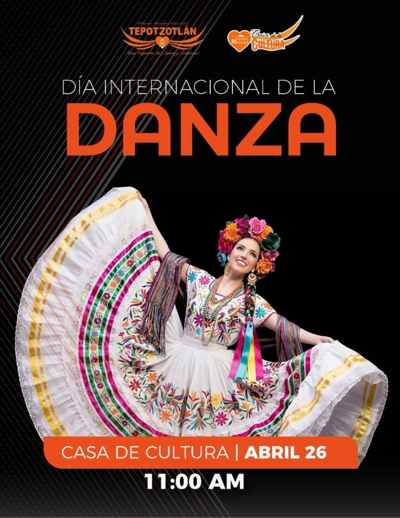 Nuestra Presidenta Municipal, Lic. María de los Ángeles Zuppa Villegas, en conjunto con el H. Ayuntamiento de Tepotzotlán 2025-2027, te invita a celebrar el Día Internacional de la Danza con una mañana llena de ritmo, talento y tradición.