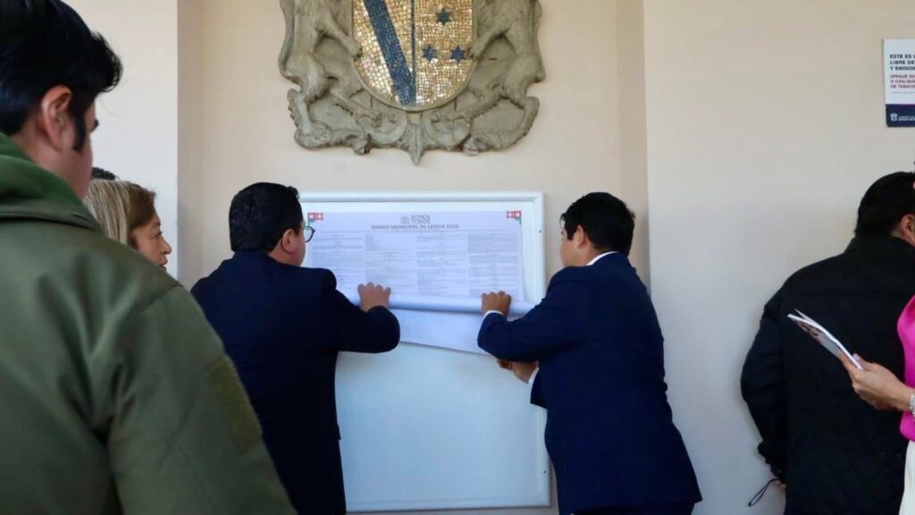 Al finalizar el evento, el presidente municipal y las autoridades presentes realizaron la publicación oficial del Bando Municipal de Lerma 2026 en las inmediaciones del Palacio Municipal, cumpliendo con lo establecido por la normatividad vigente.