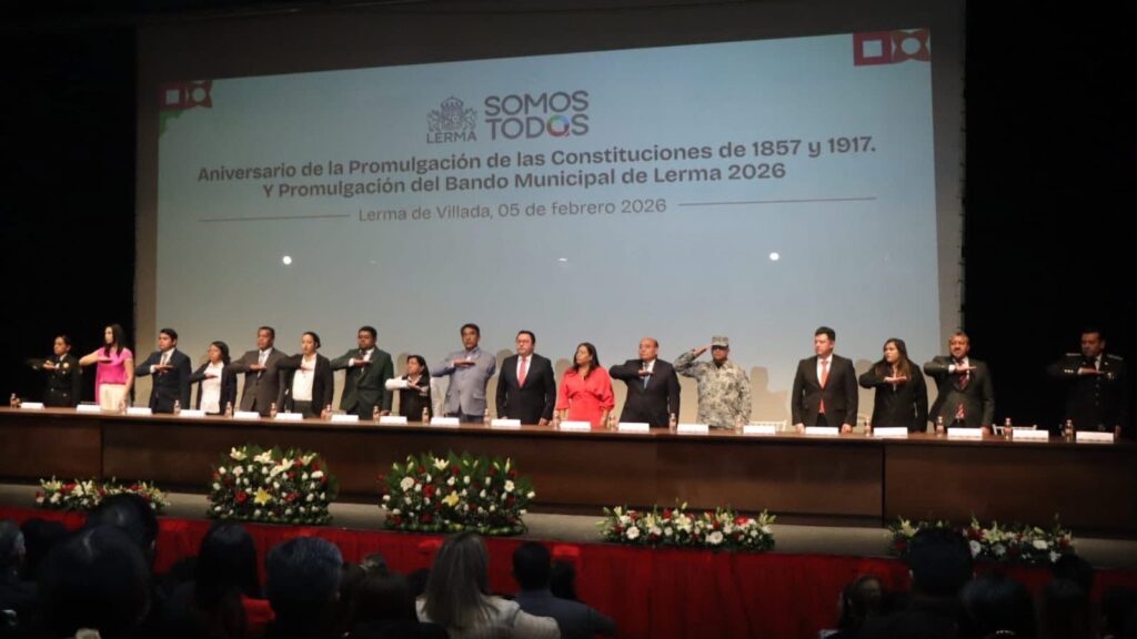 En el marco del aniversario de la promulgación de las Constituciones de 1857 y 1917, el Gobierno Municipal de Lerma llevó a cabo la promulgación del Bando Municipal de Lerma 2026, instrumento normativo que fortalece la convivencia social, la seguridad y las obligaciones tanto de las autoridades como de la ciudadanía.