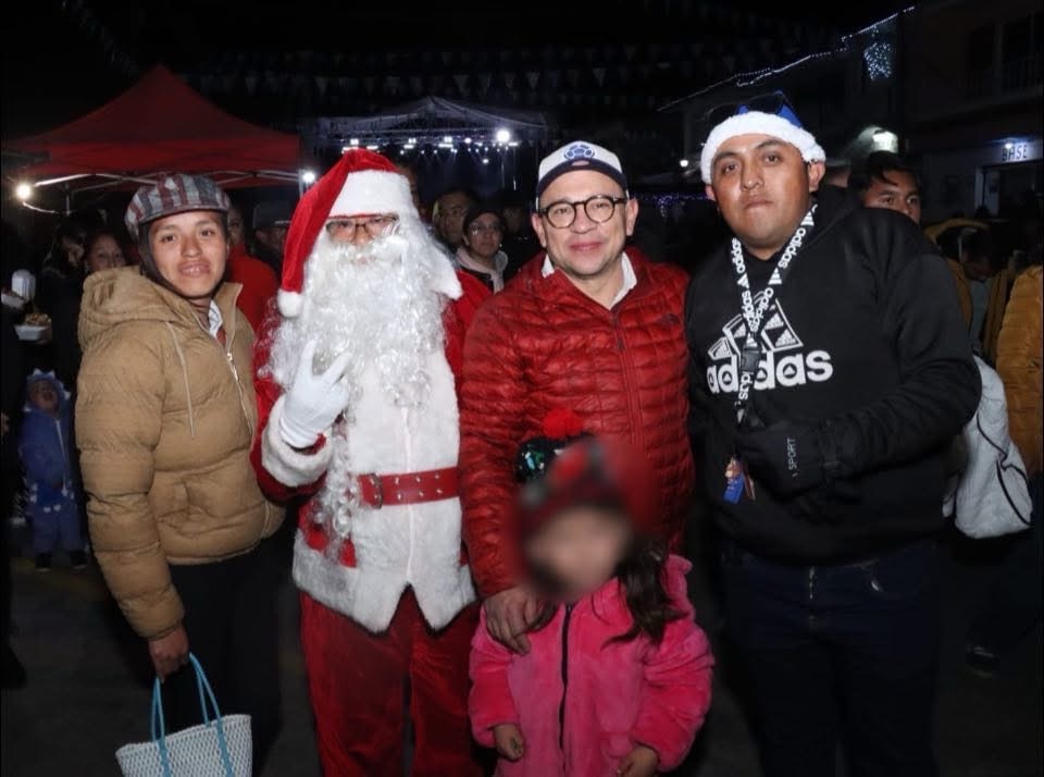 San Cristóbal Tecolit fue uno de los puntos de mayor alegría, donde niñas, niños y adultos disfrutaron de la caravana navideña y del espectáculo musical de Campeche Show, agrupación que encendió el ánimo festivo entre los asistentes. El corazón navideño también llegó a Santa María del Monte con la presentación de La Victoria de México y a San Antonio Acahualco, donde Tex Tex hizo vibrar al público en un ambiente de convivencia y celebración.