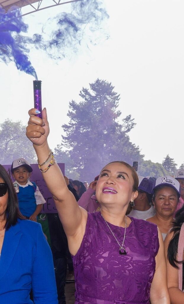La jornada concluyó con el encendido simbólico de bengalas moradas por parte de las asistentes, como muestra de la lucha permanente de las mujeres por la igualdad y el respeto a sus derechos.