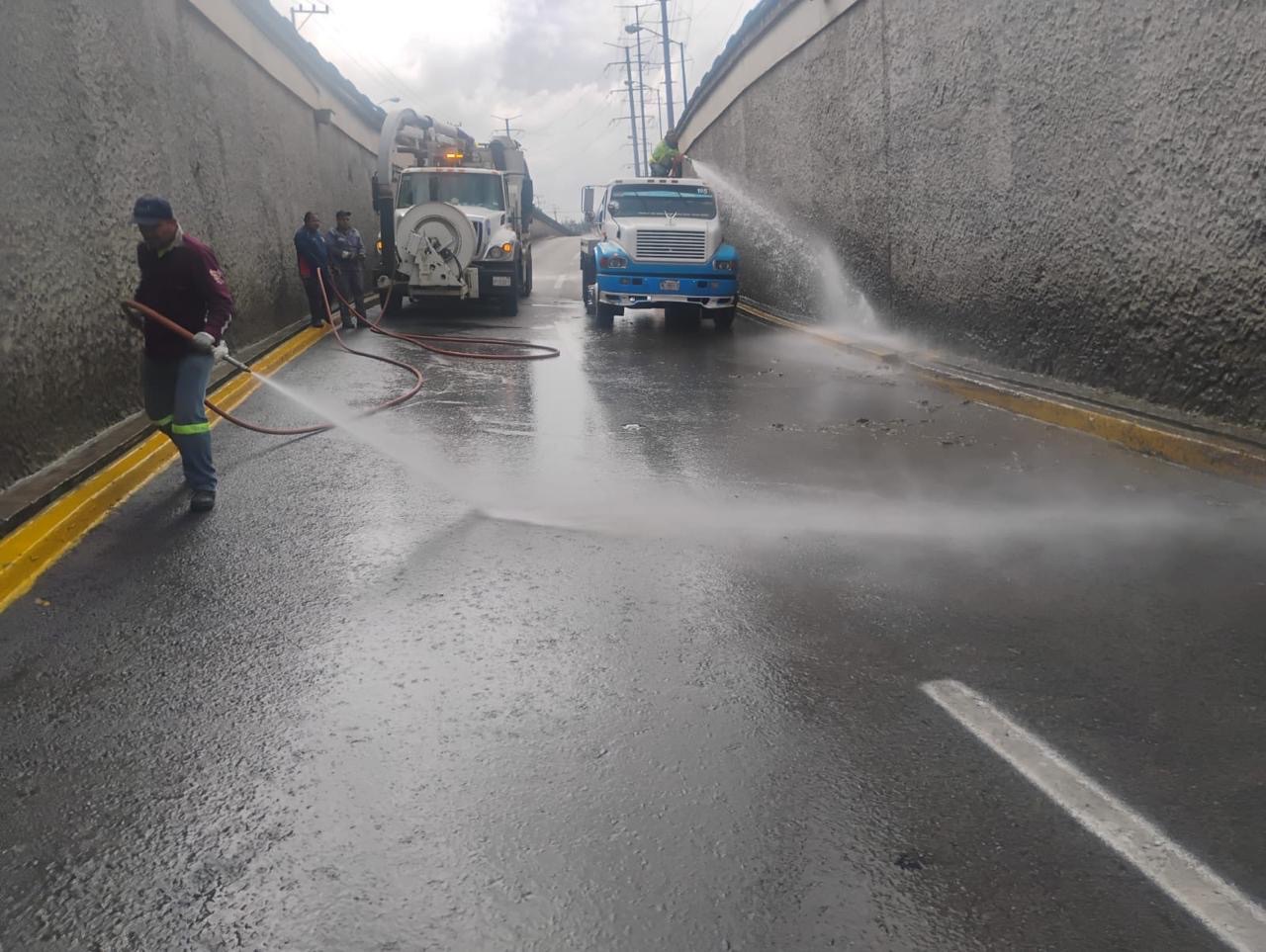 Por instrucciones del presidente municipal Ricardo Moreno Bastida, trabajadores del Organismo Agua y Saneamiento de Toluca acudieron al bajo puente ubicado en la intersección de Las Torres y Jesús Carranza, donde realizaron tareas de limpieza y retiro de residuos, apoyados con un camión vactor para despejar la vialidad.