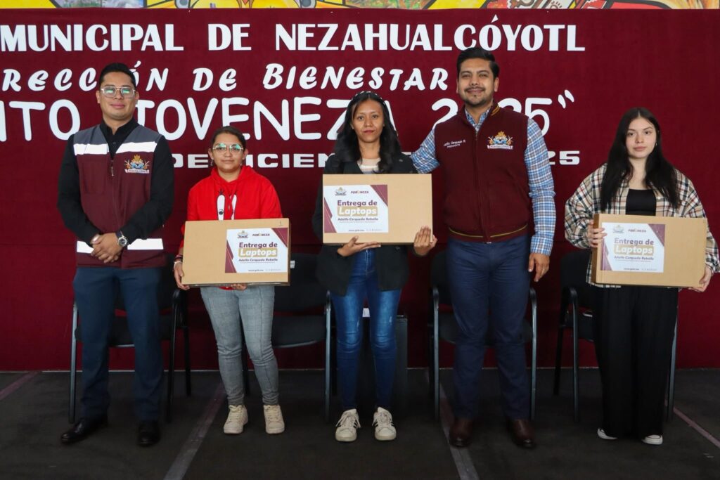 Nezahualcóyotl, Estado de México.— Como parte de las acciones para fortalecer la educación y reconocer el esfuerzo académico, el presidente municipal de Nezahualcóyotl, Adolfo Cerqueda, encabezó la entrega de laptops a alumnas y alumnos con los mejores promedios del municipio, a través del programa Talento Joven Neza 2025.