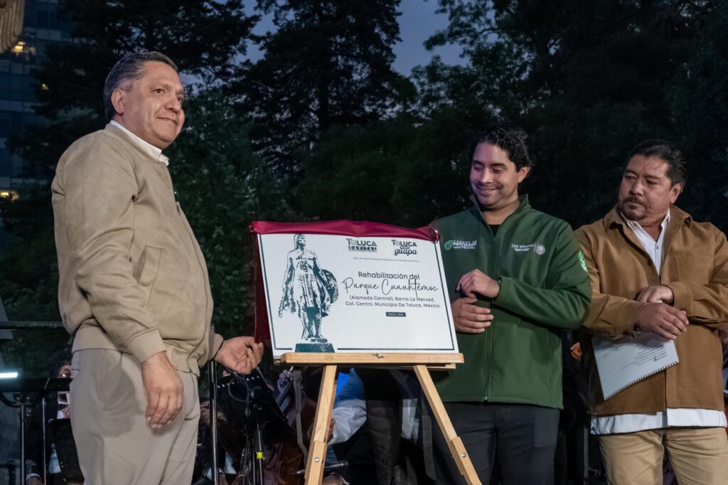 Toluca, 13 de marzo de 2026.— El presidente municipal Ricardo Moreno Bastida inauguró la renovación integral del Parque Cuauhtémoc-Alameda Central, un espacio emblemático de más de un siglo de historia que fue rehabilitado para convertirse en un punto de encuentro cultural, ambiental y recreativo para la población.