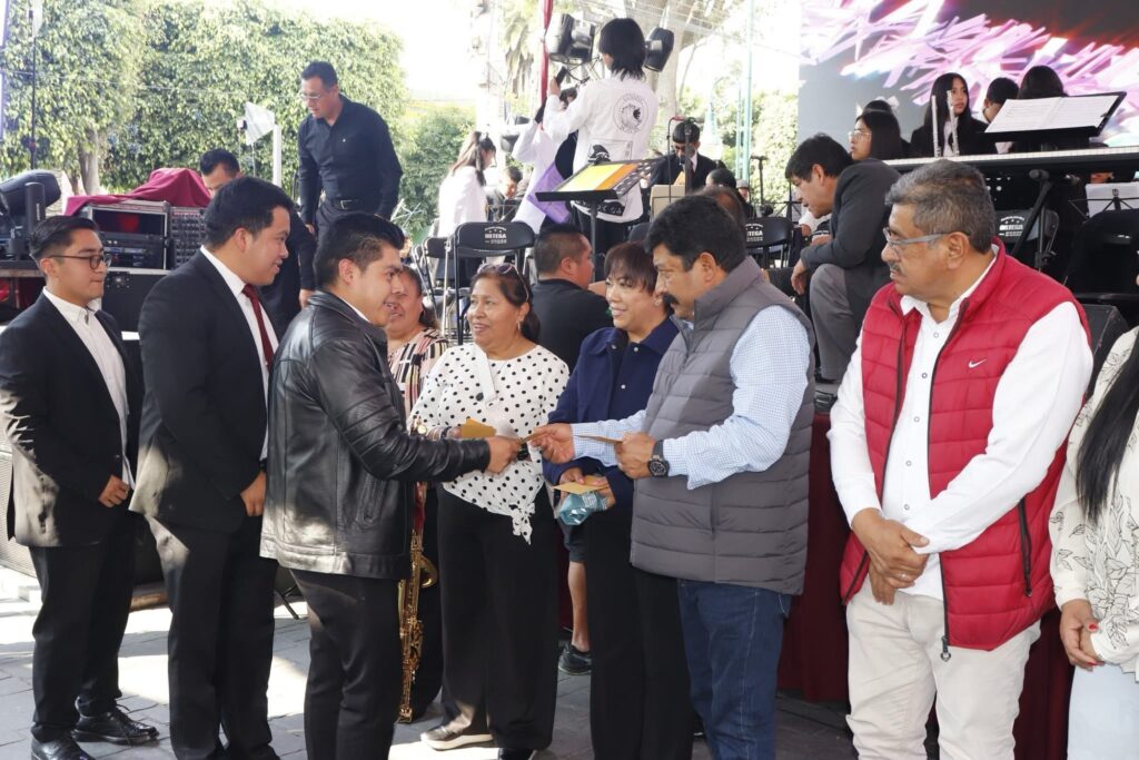 Durante el acto de clausura, autoridades municipales, acompañadas por la presidenta honoraria del DIF, Yesenia Armas Tobón, entregaron reconocimientos y estímulos a las bandas participantes, en agradecimiento a su aportación artística y compromiso con la música. Asimismo, se otorgó un vale por 135 instrumentos musicales destinados a alumnas y alumnos de la Escuela de Enseñanza Musical (ESEM), como parte del impulso a la formación artística de las nuevas generaciones.