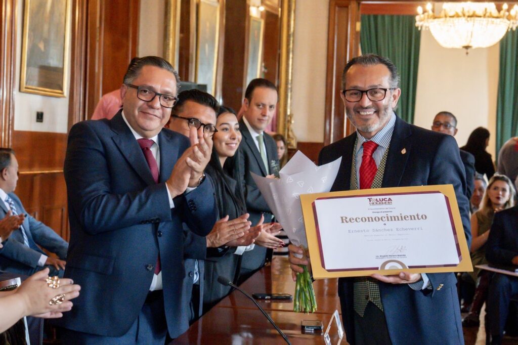 Durante la ceremonia, el edil entregó reconocimientos por su trayectoria y aportaciones a Joaquín Alava Quintanilla, Jesús Henkel Libién, Carlos Alejandro Monroy Carrillo, Guillermo Ochoa García y Guillermo Jorge Ríos Abarca, mejor conocido como Memo Ríos, quienes con su talento y compromiso han enaltecido el nombre de Toluca.