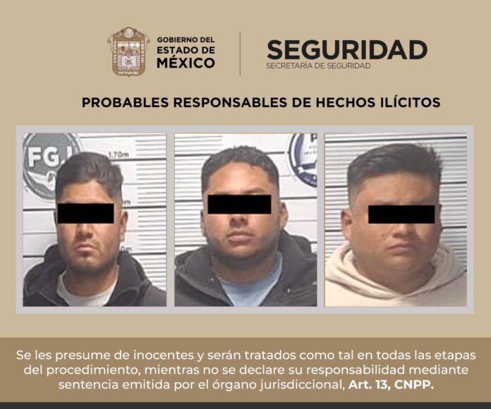 San Mateo Atenco, Estado de México.– En una acción conjunta, elementos de la Secretaría de Seguridad del Estado de México (SSEM), la Fiscalía General de Justicia mexiquense (FGJEM) y la Policía Municipal detuvieron a cuatro personas —tres adultos y un menor de edad, todos de nacionalidad colombiana— por su probable participación en los delitos de extorsión y portación de arma de fuego.