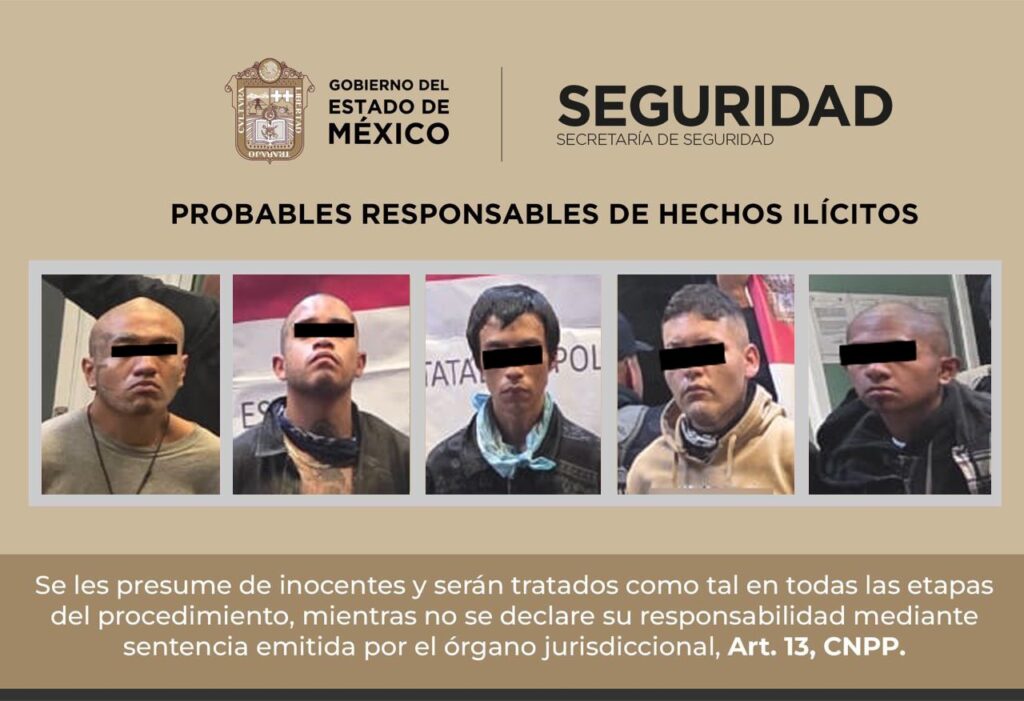 Los detenidos fueron identificados como Bryan “N”, de 21 años; Rubén “N”, de 18; Abraham “N”, de 20; Anthony “N”, de 21; y Julio “N”, de 20 años. Tras informarles sus derechos, fueron puestos a disposición del Agente del Ministerio Público para determinar su situación jurídica.