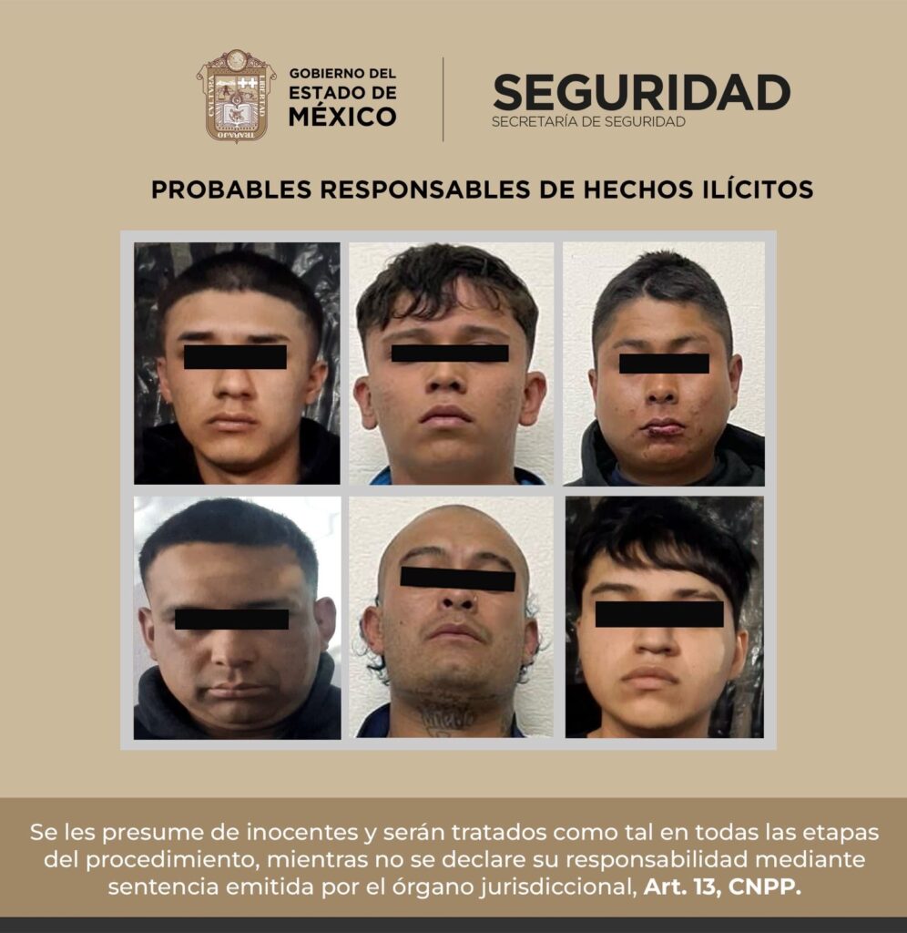 Los detenidos fueron identificados como Brandon “N” (20 años), Uriel “N” (19 años), Juan “N” (29 años), Ricardo “N” (24 años), Jesús “N” (29 años) y Daniel “N” (25 años), quienes posiblemente forman parte de una asociación sindical.